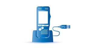 The stable and practical docking station provides speedy charging and automatic transfer of your recordings to your computer. With the optional foot pedal connected, the docking station even enables hands-free recording and transcription without a computer. |